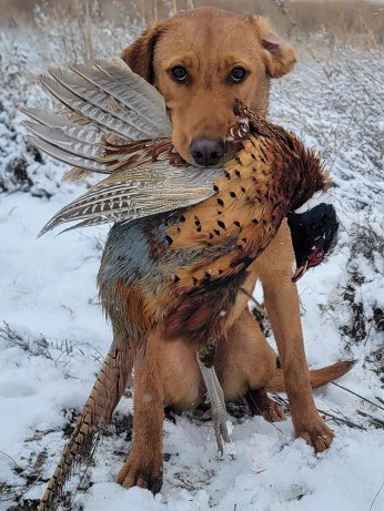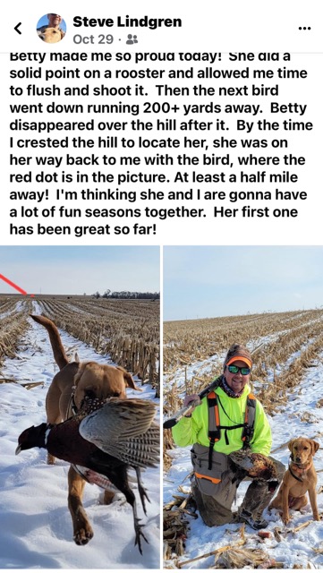 Beautiful picture of our 10 month old pup “Luna” and her new owner on a two- day hunt in North Dakota here’s what good breeding can do in a dog!